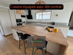 Elle comprend au rdc : Une entrée desservant une pièce de vie de 50m² avec cuisine ouverte équipée (ilôt central), une suite parentale avec dressing et salle d'eau privative, un espace bureau aménagée, une buanderie et un wc suspendu.