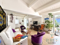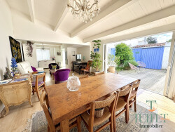 Dans un environnement calme et privilégié, découvrez cette charmante maison de plain-pied, entièrement rénovée en 2015, offrant un grand confort de vie à l'année et des prestations de qualité. Idéalement située, vous profiterez d'un accès rapide à la plage et aux tennis par la forêt, tout en rejoignant le centre-ville à pied. Dès l'entrée, la maison séduit par sa luminosité et ses volumes. Le salon cathédrale, spacieux et chaleureux, s'ouvre directement sur le patio clos, ensoleillé et intime, véritable cocon à l'abri des regards. La cuisine américaine, aménagée et entièrement équipée, s'intègre parfaitement à l'espace de vie pour plus de convivialité. Côté nuit, vous disposerez de 3 chambres, idéales pour une vie de famille ou pour accueillir vos proches. Les atouts du bien : Maison rénovée (2015) aucun travaux à prévoir Plain-pied et confort de vie optimal Belle luminosité et volumes agréables Salon cathédrale ouvert sur l'extérieur Patio clos, intime et bien exposé Dépendance, offrant de multiples possibilités Parking privatif Situation idéale : plage, forêt, tennis et centre-ville à pied Un bien rare où il ne vous reste plus qu'à poser vos valises et profiter du bord de mer.