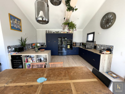 EXCLUSIVITE. La Plaine Sur Mer. Au calme à quelques minutes de la plage. Volume, luminosité et confort pour cette belle villa de 224 m2. Avec sa magnifique vue dégagée sur la campagne, elle comprend au rez-de-chaussée, une entrée avec rangements, une magnifique pièce de vie avec grande cuisine ouverte entièrement aménagée et équipée, salle à manger et un vaste salon. Cette pièce baignée de lumière offre un bien être, du charme avec ses larges baies, son plafond effet cathédrale (4 m) et ses poutres apparentes. Le tout donnant accès à de grandes terrasses et au jardin clos, arboré et sans vis à vis. Un dégagement qui dessert un espace nuit (pouvant être rendu indépendant pour de la location) comprenant un bureau, deux chambres avec dressings, une vaste pièce d'eau avec douche, baignoire et Wc suspendu. Une buanderie et un deuxième Wc suspendu complètent ce niveau. A l'étage se trouvent une mezzanine ouverte sur l'entrée, un dégagement desservant 3 chambres, une salle d'eau avec Wc. Un grand garage complète cette jolie propriété. Belles prestations, volets électriques et alarme, vmc double flux thermodynamique avec pompe à chaleur intégré (chaud/froid), double vitrage, caméra de suveillance. Maison entierement sous domotique et pilotable à distance (volets, alarme, poêle, vmc et sèche serviette), fibre optique. Maison très économique.Belle parcelle de plus de 800 m2. A quelques minutes de la Plaine et de la plage du Cormier. Pornic en moins de 10 minutes. Bien rare sur le secteur offrant beaucoup de perspectives. A visiter sans tarder. Contactez-moi Julien Delanoë au 06.62.17.78.80 Inscrit au RSAC de Nantes sous le No 827878901 agissants sous le statut d'agent commercial pour le compte d'Immo Nantes. Réf : 2205JDIMMO : honoraires inclus à la charge de l'acquéreur : 3.76% 'Les informations sur les risques auxquels ce bien est exposé sont disponibles sur le site Géorisques : www.georisques.gouv.fr'