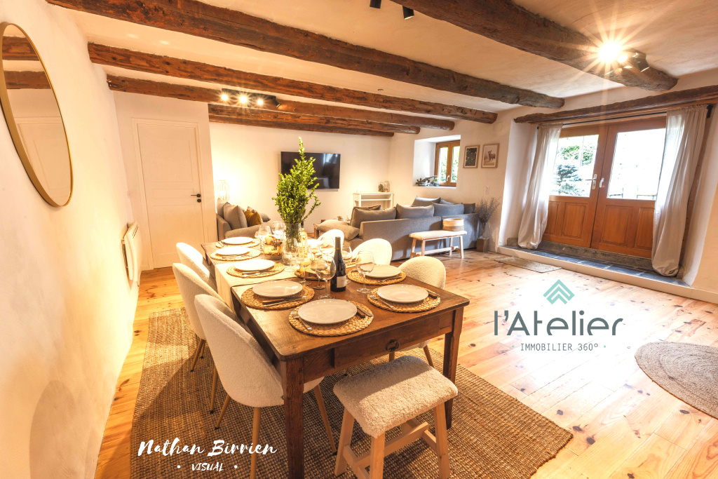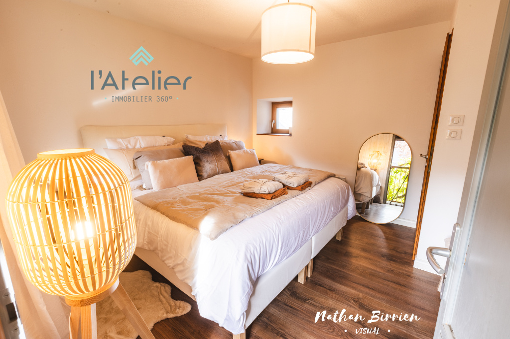 À l'étage, la maison devient plus intime. Deux chambres ouvrent sur la galerie plein sud et regardent la montagne. La troisième chambre offre 17 m2 et permet d'imaginer une suite, un espace familial, un refuge. La salle de bain déploie 9,50 m2 et facilite le quotidien. La buanderie organise. Le WC indépendant simplifie. Chaque pièce remplit sa fonction. Chaque volume trouve sa place. À l'extérieur, le terrain de 1 492 m2 entoure la maison et lui donne de l'air. Le garage de 33 m2 accueille vos envies de bricolage et evidemment vos voitures. L'espace au-dessus propose encore des possibilités. La maison raconte une histoire. Elle assume son charme ancien. Elle affirme sa modernité. Elle crée une atmosphère douce, chaleureuse, singulière. Elle ne cherche pas à séduire. Elle convainc. 123,50 m2 loi Carrez. Un emplacement recherché. Une vue qui ne lasse jamais.