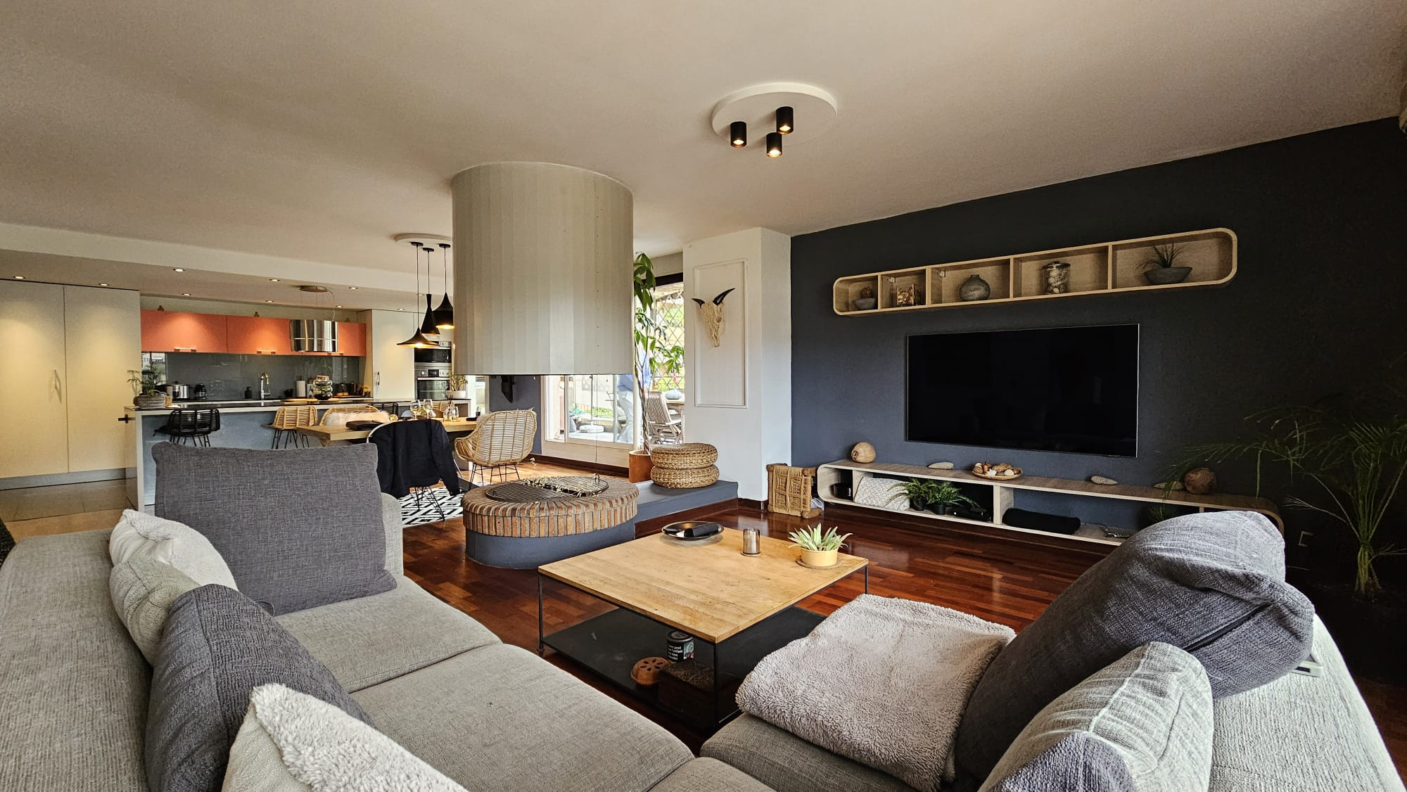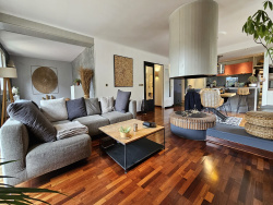 des Châteaux, l'agence aux forfaits fixes pour la vente des biens immobiliers, vous propose : Au coeur du Hameau de l'Oli, dans une belle résidence arborée, un superbe appartement de 4/5 pièces de 135,3 m2, avec 3 terrasses totalisant 44 m2 d'espace extérieur. Situé au 3ème et dernier étage, ce bien se compose d'une entrée ouvrant sur un magnifique salon avec cheminée, coin bureau et cuisine haut de gamme entièrement équipée, totalisant 54 m2 et 2 belles et vastes terrasses exposé sud/ouest. La partie nuit comprend 3 grandes chambres, chacune avec de vaste rangement, dont une avec sa terrasse privative et une autre avec un balcon. Egalement une grande salle d'eau avec double vasque et WC. Un autre WC invité est accessible depuis l'entrée ainsi qu'une arrière cuisine avec fenêtre et facilement transformable en 2ème salle de bain. Une cave complète ce bien, ainsi qu'un garage en sous-sol de la résidence et un parking privatif. Un très bel appartement familial, entouré d'espaces extérieurs en triple exposition, en excellent état et avec des matériaux de qualité (parquet massif dans toutes les pièces, cuisine haut de gamme) dans une résidence très bien tenue et sécurisée, au coeur d'un parc arboré de 2 hectares. Arret bus ligne 14 à 2 minutes à pied