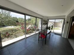 Nous vous proposons cette agréable propriété située en impasse au calme d'une surface de 158 m2 environ où vous y découvrirez, une entrée, une trés belle pièce de vie équipée d'un insert à granulés ouvert sur une cuisine équipée et aménagée, une véranda 11,50 m2 env., deux chambres dont une avec une salle d'eau et l'autre avec une salle de bain et un WC indépendant.