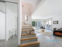 Dès l'entrée, la villa révèle des volumes généreux et une belle luminosité. Le rez-de-chaussée s'organise autour d'un vaste séjour offrant un accès de plain-pied à la terrasse carrelée et au jardin. La cuisine ouverte prolonge naturellement l'espace de vie et permet d'imaginer un agréable coin repas ou une salle à manger pour partager les moments du quotidien.