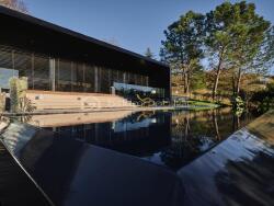 Au niveau inférieur : lingerie équipée, cellier, locaux techniques, cave à vin climatisée et un hall d'entrée conçu comme une véritable séquence architecturale.