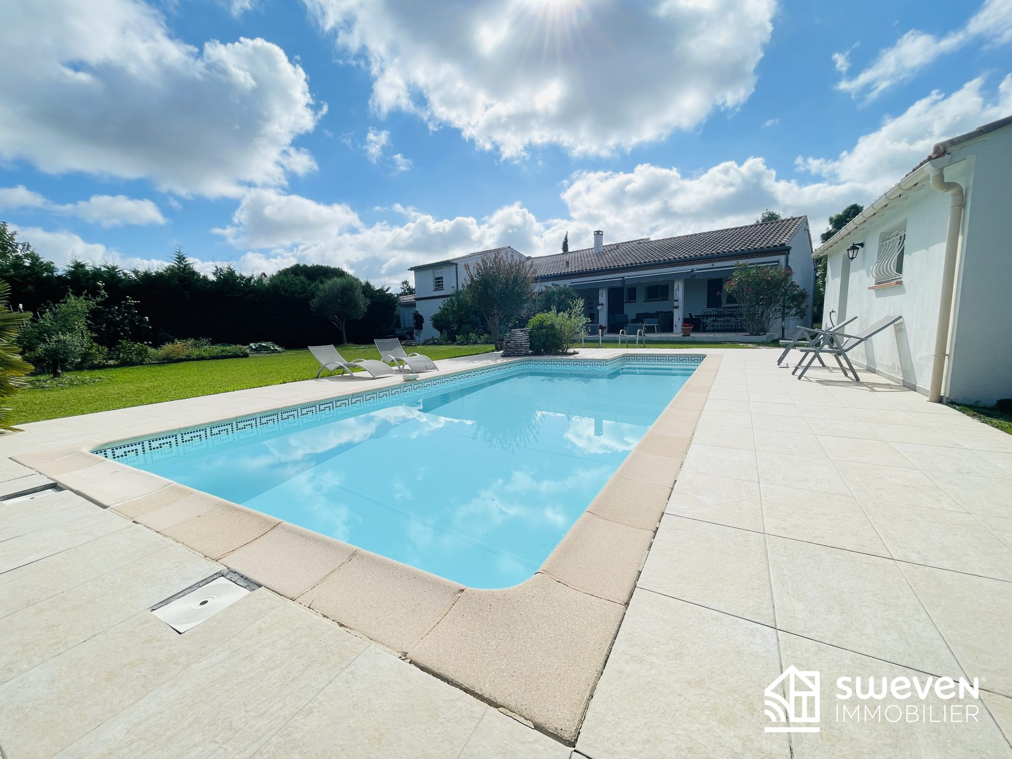 Une véranda chaleureuse prolonge l'espace de vie et s'ouvre sur une magnifique piscine, entièrement protégée des regards, offrant ainsi un véritable havre de paix au c?ur de la ville. À l'extérieur, une cuisine d'été et un atelier permettent de profiter pleinement de la belle saison, de recevoir ou de laisser libre cours à ses passions.