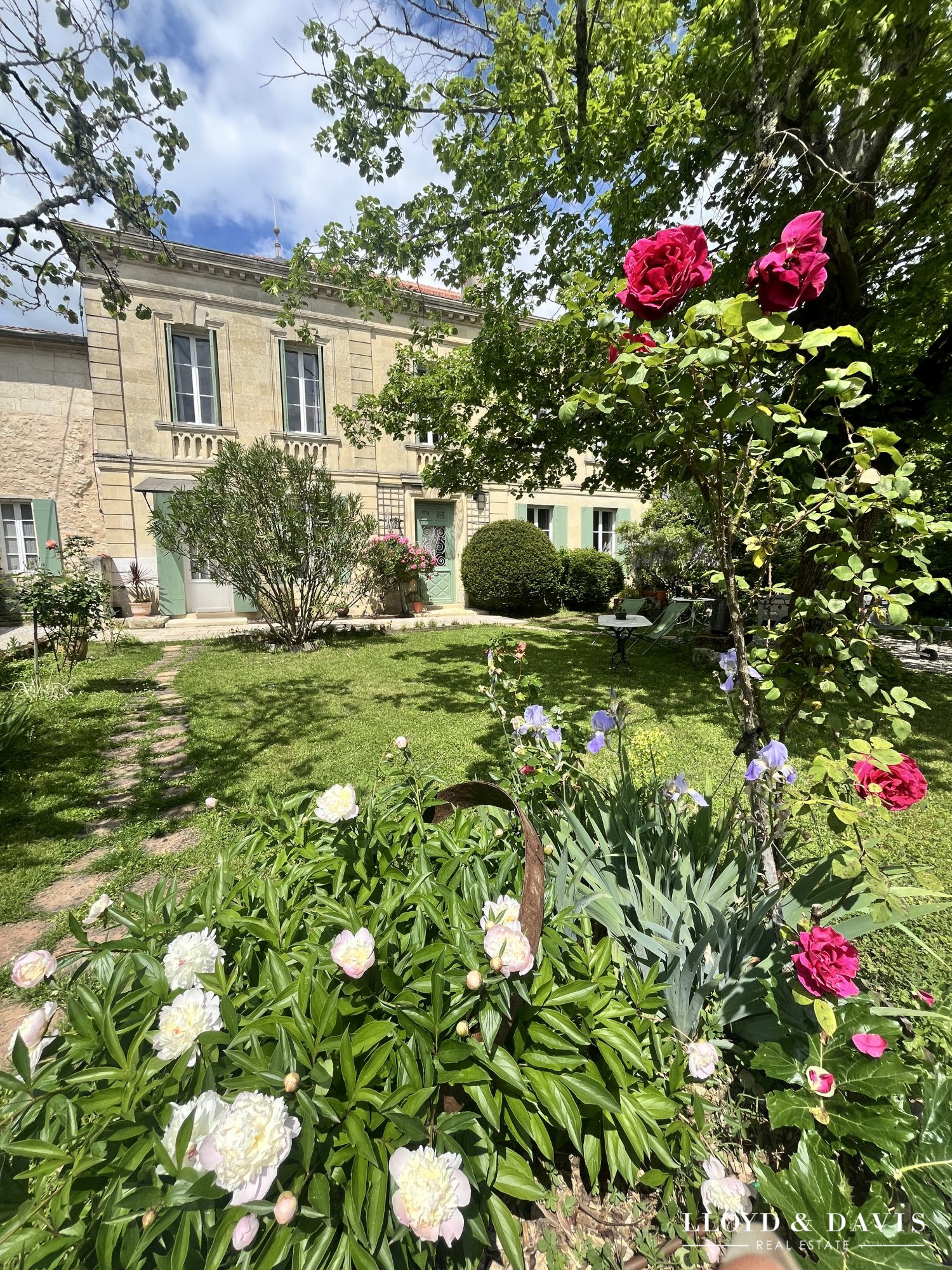 À cinquante minutes de Bordeaux. La propriété conjugue ancrage patrimonial et discrétion campagnarde.