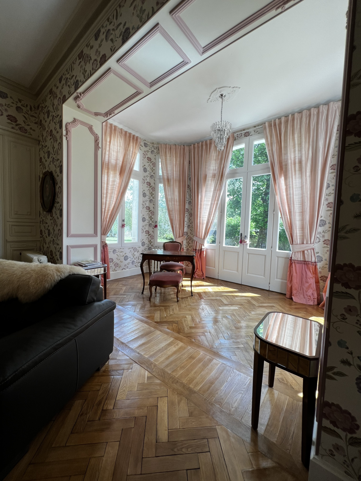 Sous des plafonds généreux. La pierre taillée. Les parquets anciens et les cheminées en place dialoguent naturellement avec des espaces pensés pour vivre au large. Deux salons. Une salle à manger. Huit chambres au total. Chacune dotée de ses propres volumes.