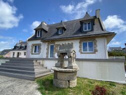 A vendre. Plouarzel-Plages. Pleine vue mer pour cette traditionnelle construire en 1980 sur 1340 m2 de terrain. Entrée cathédrale, salon séjour, cuisine indépendante, 4 chambres, 2 salle de bains. Elevée sur sous-sol complet, grand garage supplémentaire. 2 terrasses. Splendide vue mer imprenable, proximité des plages de sable fin.