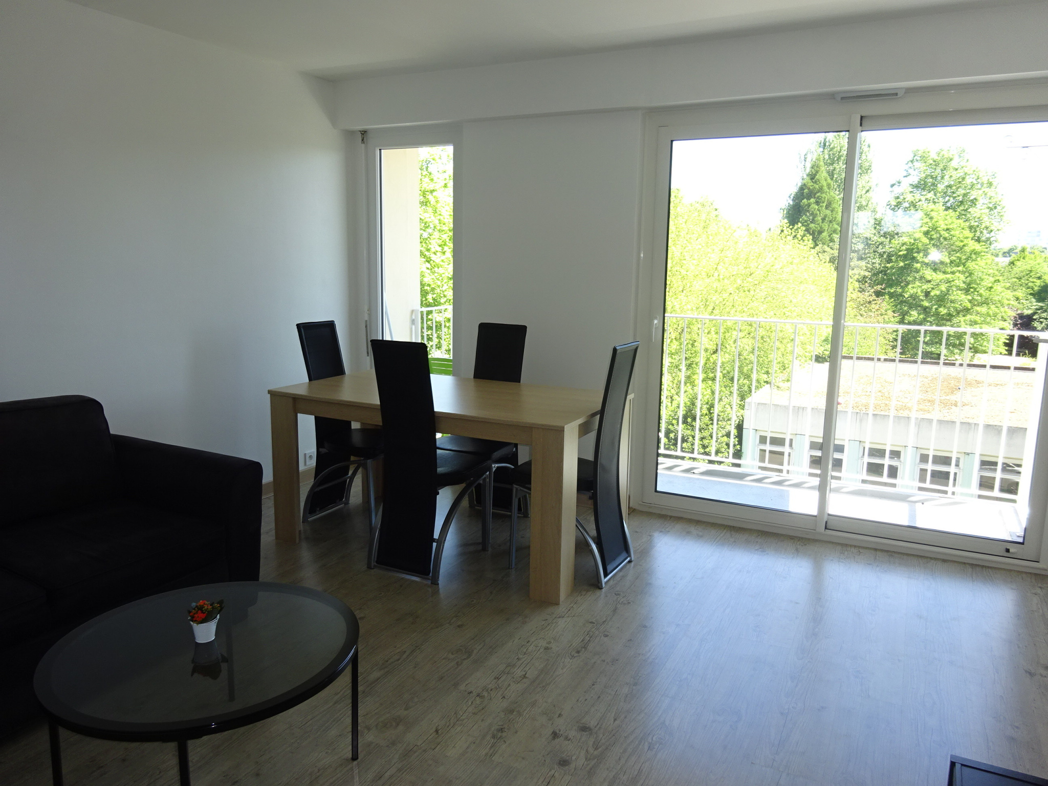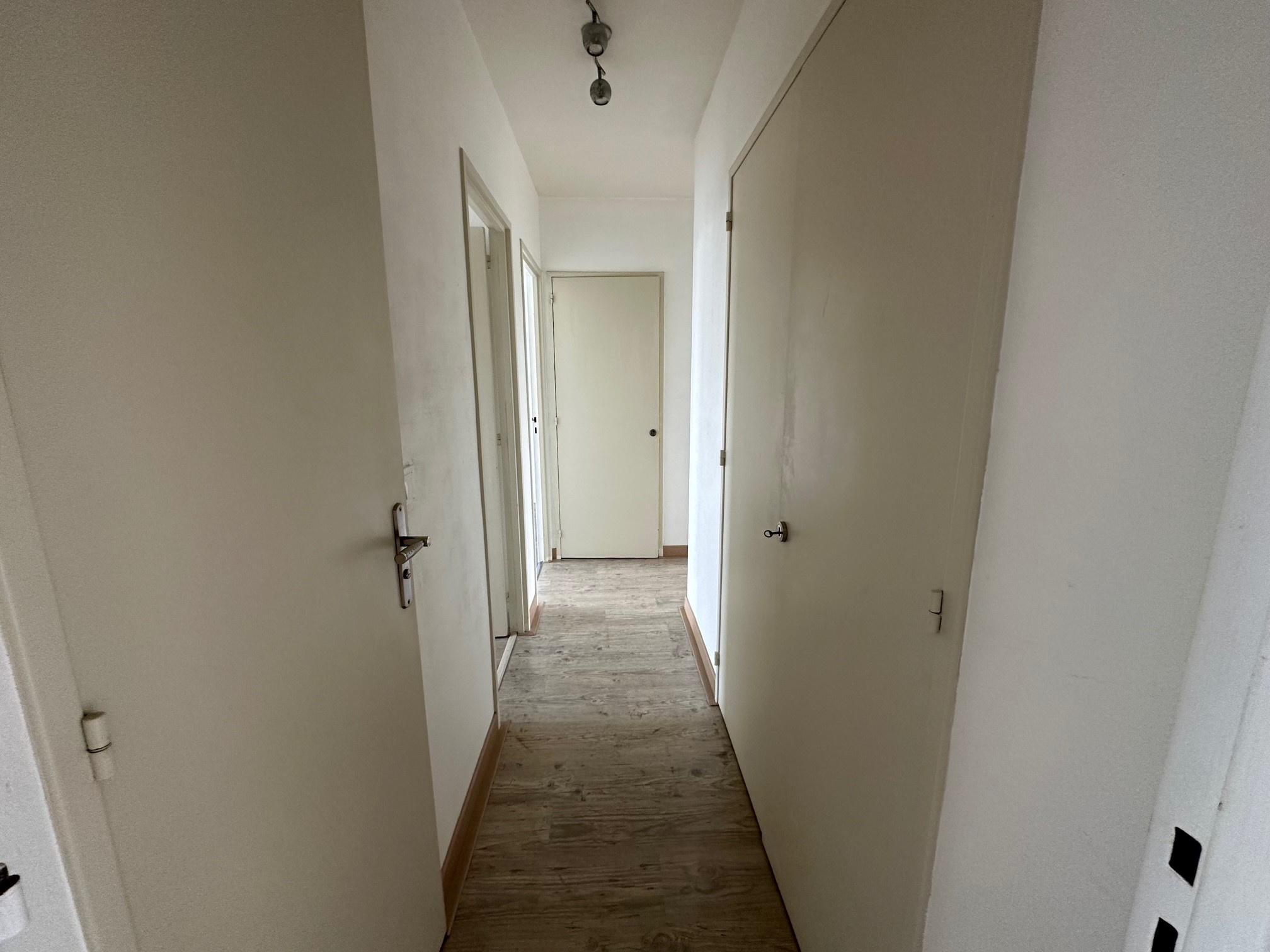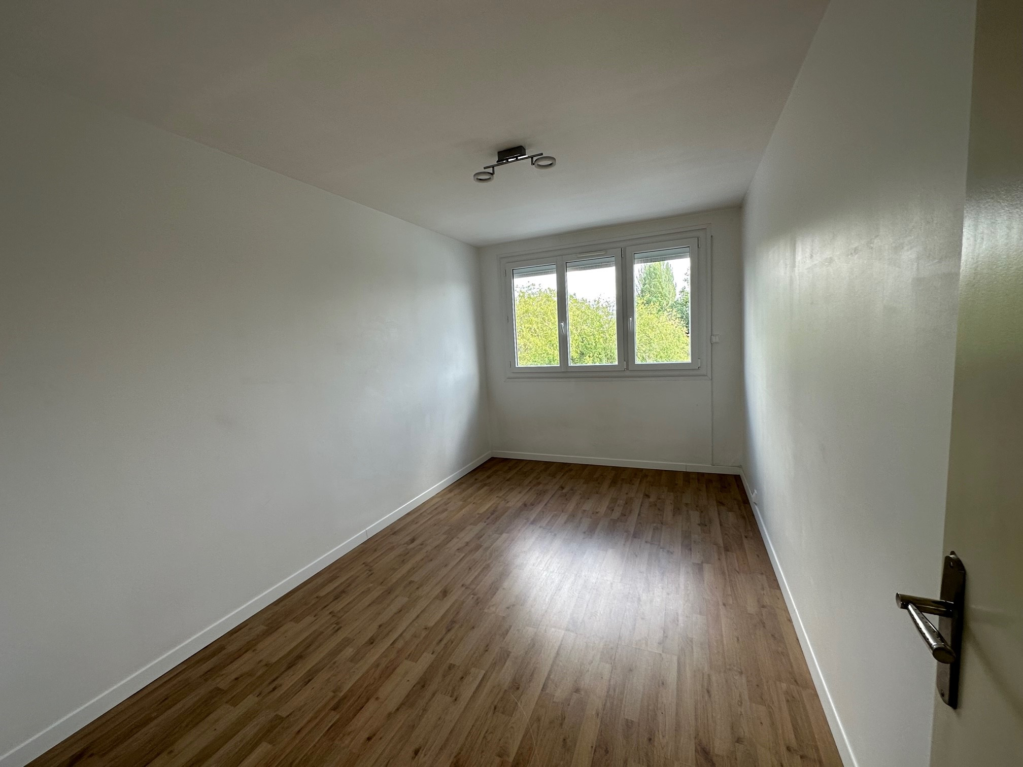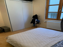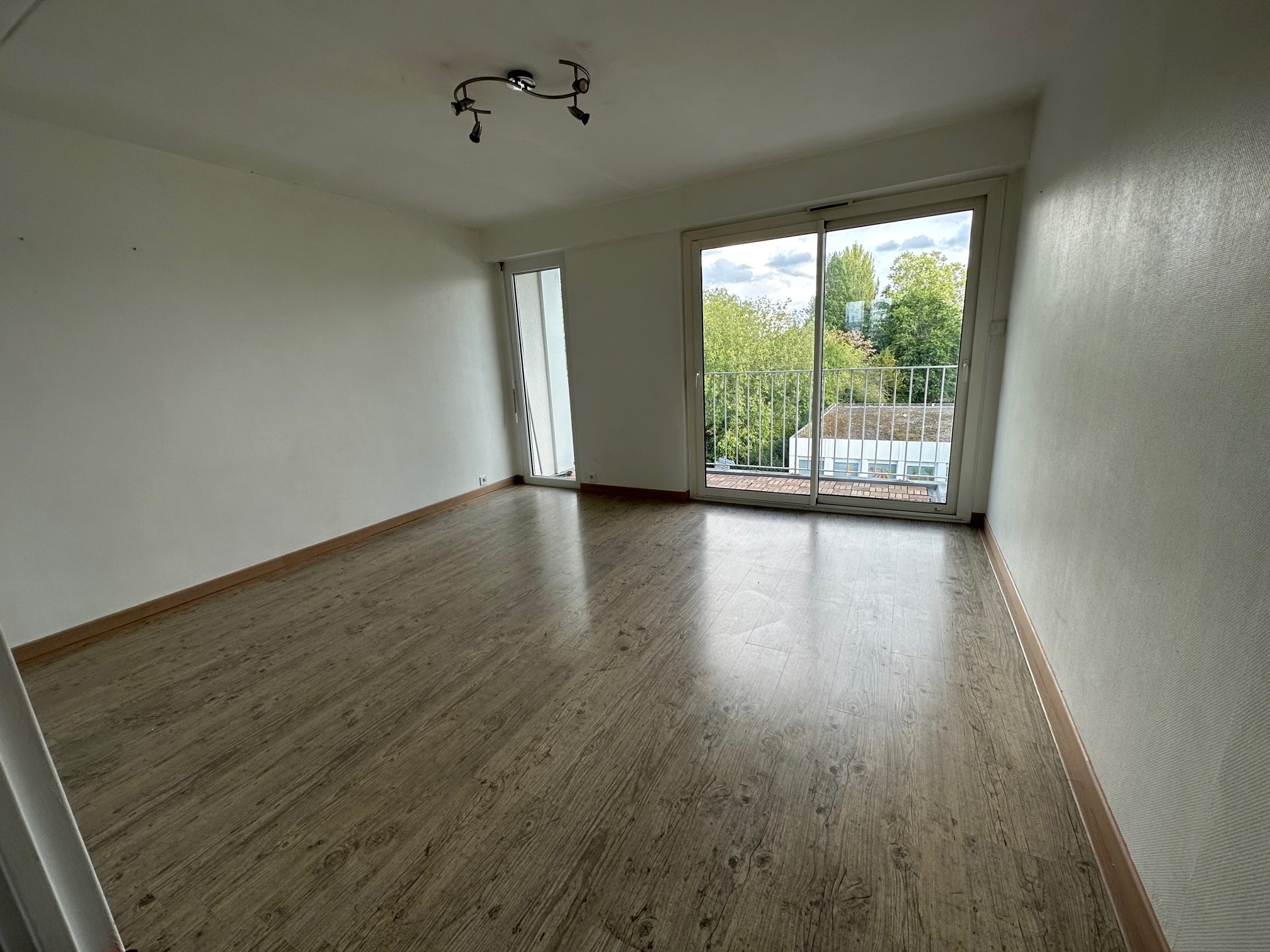 LAVAL, à proximité de la rue du Général de Gaulle un appartement de type 3 d'environ 68 m2 comprenant une entrée, WC séparé, un salon/séjour, une cuisine aménagée et équipée (plaques vitrocéramiques, hotte), deux chambres avec placards coulissants dont une avec une salle de bains et WC séparé. Une cour