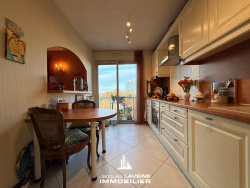 EXCLUSIVITÉ JLI! VENTE EN VIAGER OCCUPÉ! Vaste appartement 4 pièces de 94m2 au 3o et dernier étage d'une résidence de qualité et située au calme, proche toutes commodités! Entrée avec rangements, bel espace salon-séjour de + de 35m2 accès balcon panoramique de 25m2, cuisine équipée, 2 chambres, une salle de bains, une salle d'eau avec wc. Garage et cave en sous-sol. Rente viagère 1 065 EUR Viager sur une tête, personne de sexe féminin agée de 73 ans.