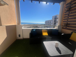 Le Barcarès Les pieds dans l'eau et à proximité immédiate du Lydia, des Festivals et animations : Quartier de la grande plage, très beau 2 pièces cabine au 3ème étage, belle terrasse vue mer, avec climatisation et WIFI, équipé 4 à 6 personnes. Composé d'un salon séjour avec un couchage canapé lit, TV connectée, cuisine équipée, une chambre à l'ouest avec lit double, placards et coin coiffeuse. Coin cabine 2 lits superposés.Une salle d'eau avec machine à laver et WC séparés. Parking privatif dans la résidence et accès direct à la plage. Appartement entièrement rénové avec goût. Commerces à proximité. Location à partir de 55 EUR la nuitée, 2 nuits minimum de octobre à Mars, réduction sur les longs séjours possible renseignez vous. Ménage fin de séjour obligatoire 55 EUR. Réservez dès maintenant et préparez-vous à vivre des moments magiques au Barcarès ! Linge de lit et serviettes de toilettes non inclus (location possible 20EUR/personne). Réservation 30% avec contrat de location et demande d'assurance villégiature. Vous êtes propriétaire d'un logement sur le Barcarès ou le littoral du 66 ou de l'Aude ? N'hésitez pas à nous contacter pour un devis gratuit, formules à la carte pour vous accompagner en toute confiance et sécurité dans la mise en location de votre bien ! Contactez notre agence CENTRAL IMMOBILIER cecile@centralimmo66.com ou 0612981271