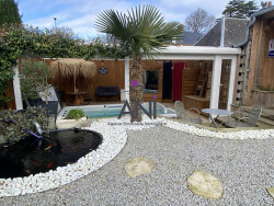 Sur un terrain de 354 m² superbement aménagé comprenant SPA de nage couvert avec terrasse douche et W.C. extérieur. Terrasses couvertes et non-couvertes avec espace bar extérieur. Parking pour 4 voitures.