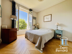 Situé au premier étage d'une copropriété très bien entretenue, nous vous proposons à la vente ce superbe appartement d'environ 100 m² doté d'un balcon et d'une vue dégagée sur un parc arboré. Il se compose d'une vaste entrée, offrant un accès à un séjour avec cheminée et parquet, très lumineux, ouvrant par des grandes portes-fenêtres sur le balcon exposé sud. Une cuisine aménagée et équipée indépendante, réalisée sur mesure et dotée d'un coin repas, complète cet espace. Trois chambres, dont une bénéficiant d'un point d'eau, une salle de bains et des toilettes indépendants s'ajoutent aux prestations. L'appartement dispose de deux grandes caves privatives. Possibilité d'acquérir un garage en sus.