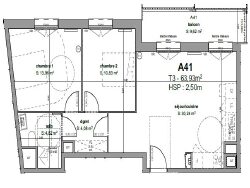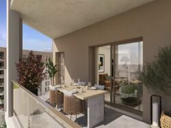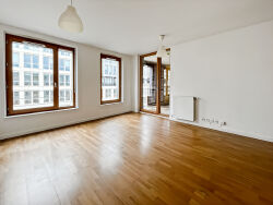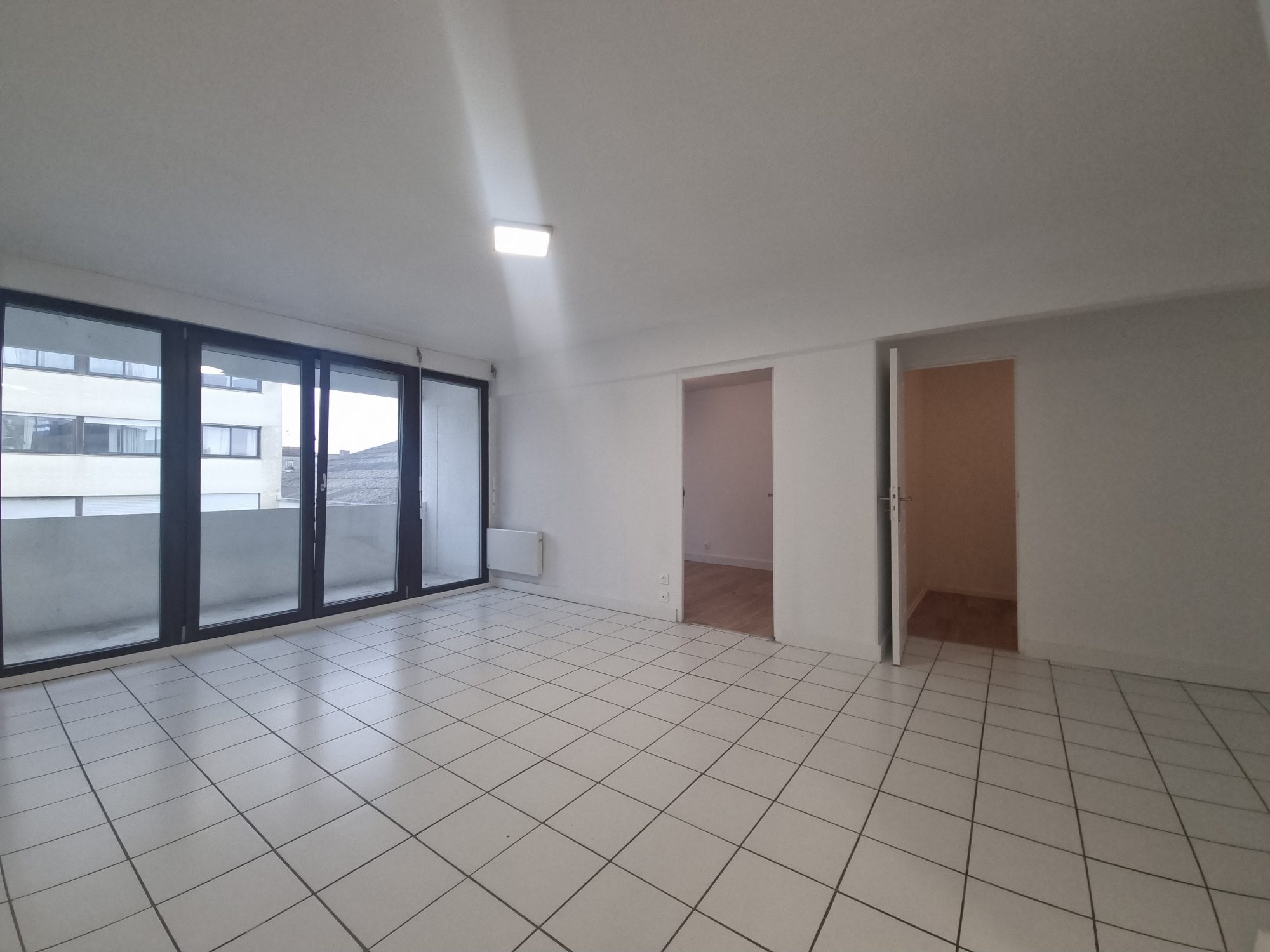 L'appartement offre deux chambres, plus de 30 m² de pièce de vie, une salle d'eau avec WC et un balcon spacieux.