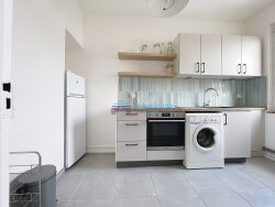 L'appartement se compose d'une entrée, d'une belle cuisine équipée (avec plaque four, frigo et machine à laver), d'un séjour lumineux, d'une chambre avec une penderie et d'une salle de bain avec WC.