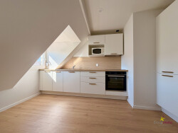 L'appartement se compose d'une entrée, d'une belle cuisine équipée (avec plaque four, frigo et machine à laver), d'un séjour lumineux, d'une chambre avec une penderie et d'une salle de bain avec WC.