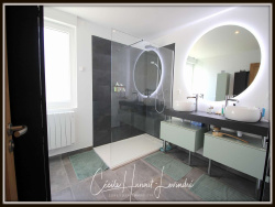 A deux pas du Mont-Saint-Michel, cette longère nouvellement restaurée avec des matériaux de qualité pourra convenir à qui a besoin de calme, d'espace et de tranquillité. Les pièces de vie sont vastes, avec une cuisine aménagée et équipée de 28 m2 et un séjour de 44 m2 sur carrelage imitation parquet. Une vie de plain pied est possible avec dans la continuité une chambre, un dressing, une salle d'eau moderne et un WC. A l'étage, on trouvera deux autres chambres, et un palier avec un accès possible sur la dépendance d'environ 75 m2. Dans le prolongement Ouest, la grange de 70 m2 au sol est couverte en ardoise. Un ancien fournil propose une surface supplémentaire à aménager. Le terrain d'environ 3.165 m2 offre un beau dégagement sur la campagne, et quelques dépendances supplémentaires y accueillent aujourd'hui poules et moutons. Détails complémentaires: Travaux 2022, Assainissement individuel aux normes, volets électriques, chauffage électrique à inertie. classement énergétique intéressant. (D). Cette annonce vous est proposée par HANOUT-LEVINDRE Cécile - EI - NoRSAC: 531379261, Enregistré à Greffe du tribunal de commerce de Coutances Les informations sur les risques auxquels ce bien est exposé sont disponibles sur le site Géorisques : www.georisques.gouv.fr - Annonce rédigée et publiée par un Agent Mandataire -