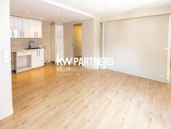 En rez-de-jardin se compose d'une entrée, une cuisine indépendante aménagée et équipée, une chambre et des rangements, une salle de bains et un w.c. séparé, ainsi qu'un double séjour.