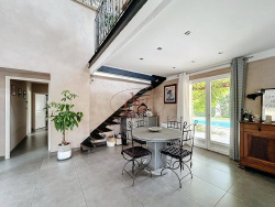 LE SOLER - Située à 10 minutes de Perpignan et 20 minutes de la mer, cette belle villa 4 faces de 160m2 totalement de plain-pied vous séduira par ses volumes, son grand terrain au calme de 1500m2, sa verdure, ses belles prestations ou encore sa pièce de vie ultra lumineuse de près de 60m2. Elle se compose de : entrée, salle à manger, séjour cathédrale avec cheminée centrale, cuisine américaine entièrement équipée, buanderie, une suite parentale, deux chambres avec placard, une salle de bains et deux WC séparés. Une mezzanine de plus de 30m2 surplombe la pièce de vie et donne un caractère immanquable à la maison. Côté extérieur : une piscine (10x5), une grande terrasse sous une magnifique pergola végétale, une cuisine extérieure avec barbecue et four à pain en dur, une salle d'eau extérieure avec wc et salle d'eau. Pour compléter le tout, vous trouverez de nombreuses places de stationnement, un garage, un cabanon de jardin en dur et un abri pour stocker le bois. Pour tout renseignement complémentaire, je vous remercie de bien vouloir contacter David SANCHEZ au 06 77 42 43 34. La présente annonce a été rédigée sous la responsabilité éditoriale de Mélanie SYLVESTRE pour la SAS DV IMMO GESTION 894 926 427 00010. Les honoraires sont à la charges du vendeur. Les informations sur les risques auxquels ce bien est exposé sont disponibles sur le site géorisques : www.georisques.gouv.fr