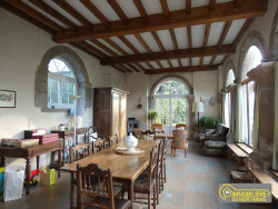 Manoir du 17ème siècle d'env. 510m² , 1 h du Mont St Michel, comprenant : -Au RDC : 2 entrées, entrée de service, quatre salons dont trois avec cheminée, cuisine aménagée, grande salle de réception, une chambre, salle d'eau-wc, buanderie-chaufferie, dégagements, -1er niveau : 1 pièce, wc, -1étage : Palier -couloir, mezzanine, wc, dégagements, 8 chambres spacieuses - placards, dont 1 en suite av sdb -wc, 1 av cabinet de toilette, au -2ème niveau : greniers Garage et une chapelle attenants, ancienne maison de gardien à restaurer, autres dépendances et hangar le tout sur 15 ha de terrain env. dont 4 ha disponibles et le reste loués Chauffage av. pompe à chaleur, fosse toutes eaux, huisseries bois DV