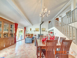 D'une surface de près de 200 m² habitable (266 m2 surface au sol), la maison offre un séjour avec hauteur sous plafond, procurant une véritable sensation d'espace, disposant d'un cheminée insert, créant une atmosphère chaleureuse. Un escalier mène à une mezzanine apportant caractère et une touche atypique., desservant les 4 chambres et deux salles de bains. La cuisine indépendante, entièrement aménagée et équipée, complète les espaces de vie.
