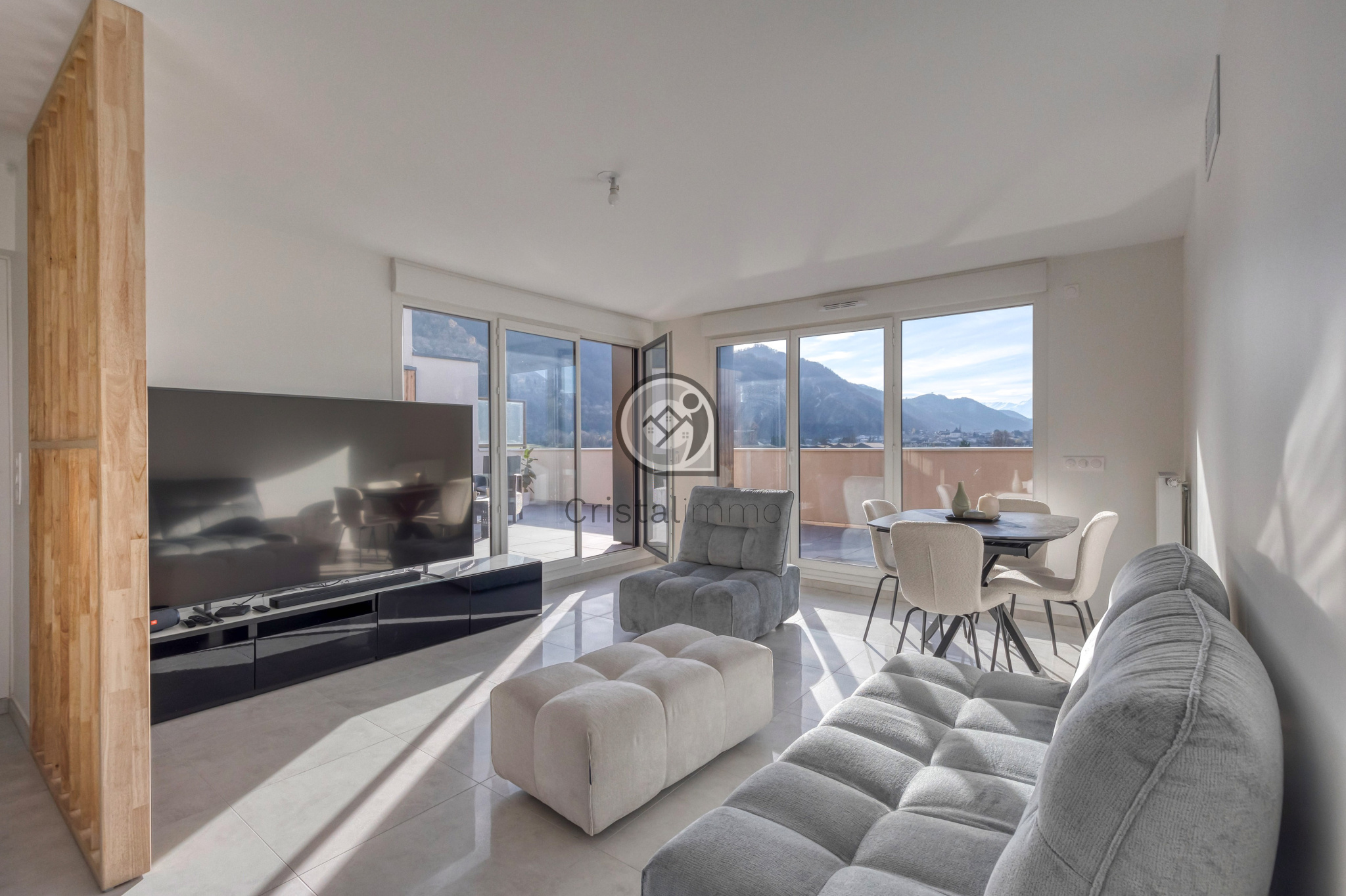 Le Versoud - Dans résidence de 2025 aux prestations soignées, T5 en dernier étage avec terrasse de 110,8 m², triple exposition et vue panoramique sur les massifs environnant. Entrée avec placard, belle pièce de vie lumineuse avec cuisine ouverte, 4 chambres avec rangements dont 2 avec une salle d'eau, chacune ayant un accès sur l'extérieur, 1 salle de bain, 2 wc. Chauffage individuel. Possibilité d'un garage et d'une place de stationnement. Frais de notaire 2,5%. Nb de lots 33.