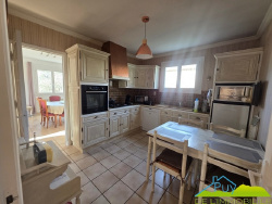 A proximité des écoles et des commerces : sur 779m2 de jardin clos et arboré avec vue sur les Monts du Sancy, agréable maison de 1984 élevée sur sous-sol complet (102,5m2 habitables) composée : Au rez de jardin : entrée, salon-salle à manger avec insert et sortie sur terrasse et jardin, cuisine équipée indépendante, 3 chambres dont 2 avec penderie, salle d'eau récente, wc, dégagement avec penderie Au sous-sol : grange garage avec porte électrique, 2 grandes caves, buanderie avec douche et wc, 1 pièce de rangement, 1 pièce avec accès à la partie habitation. Partie technique : double vitrage pvc - chauffage électrique (fluide caloporteur) et insert - bardage (côté ouest) - tout à l'égout - peinture de la façade récente - Jardin attenant avec abri.