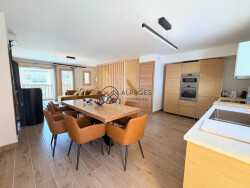 * Surface au sol : 132 m2, répartis sur trois niveaux * Construction soignée et chaleureuse dans un esprit chalet * Un espace séjour / cuisine traversant d'environ 42 m2, avec balcon * Une chambre double avec salle d'eau privative (accès indépendant) * Une chambre double * Une chambre familiale (lit double et deux lits simples superposés) * Une salle d'eau et WC indépendant * Un ski-room pour ranger les affaires de ski et s'équiper * Un garage et une place de stationnement devant le chalet