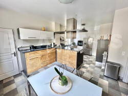 Une grande cuisine salle à manger de 21 m², parfaitement équipée, alliant fonctionnalité et esthétisme.
