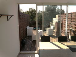 Les Hauts de Nîmes, maison type 1 de 33 m2, 1 place de parking privative, climatisation réversible, jardin et terrasse. Ce bien est loué meublé, il se compose d'une entrée, une cuisine équipée de lave vaisselle, plaques vitrocéramiques, four, frigo et machine à laver, une salle d'eau + toilettes, une pièce principale aménagée d'un lit en 140 cm en mezzanine et d'un coin salon, une salle à manger aménagée d'une grande baie vitrée donnant sur terrasse et jardin. Le site internet de Vianîmes.immo vous propose une recherche immobilière innovante, par quartiers ou secteurs scolaires, Nîmes et ses alentours.
