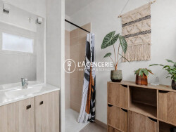 L'espace nuit comprend une chambre de 11 m² avec salle d'eau attenante (douche à l'italienne et meuble vasque). Un espace supplémentaire de plus de 3 m² permet d'aménager un dressing ou une buanderie. WC séparés.