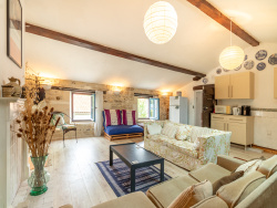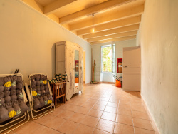 Vous serez séduits par le cachet de cette maison : poutres apparentes, moellons, cheminées d'origine, et volumes généreux.