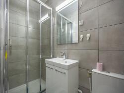 Les deux salles de bains, identiques avec une cabine de douche et une armoire sous vasque.