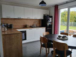 Proche centre , écoles et commerces, cette coquette villa non mitoyenne de 4 chambres plus bureau (possibilité 5ème chambre ) de 108m² offre à la location tout le modernisme et le confort d'une maison familiale. Composée pour la partie jour d'une cuisine entièrement meublée et équipée ( plaques, four, hotte, lave vaisselle et frigo congélateur) , salon climatisé pour un total de 35m². La partie nuit desservi par un couloir propose 4 chambres avec placards, une salle de bains, un coin wc séparé. Le garage de 13m² a été aménage en bureau/salle de jeux ou bureau selon les besoins de chacun, une place de parking devant la maison et 2ème place en face de la maison . Le jardin de 400m² est entièrement cloturé, sans vis à vis agrémenté sur l'arrière d'une terrasse ombragée avec store pour les beaux jours. Coup de coeur assuré pour cette maison qui sera disponible à partir du 20 décembre .