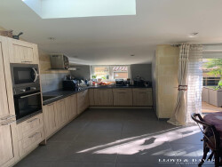 Une grande entrée dessert un bureau / bibliothèque et une belle pièce de vie avec une cuisine ouverte et entièrement équipée. La terrasse plein Sud dans le prolongement permet de se détendre avec une vue imprenable sur la piscine. Le sous-sol donnant sur le jardin intime comprend une pièce pouvant être aménagée, une cave et une grande buanderie.