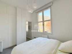 Singulier a le plaisir de vous présenter cet appartement de 57 m2 entièrement rénové situé sur le très recherché Quai du Wault à Lille au sein d'un immeuble de charme typique du Vieux-Lille. Une adresse rare et confidentielle, où élégance, lumière et prestations haut de gamme s'allient. Dès l'entrée, vous découvrez un espace de vie remarquable, parfaitement optimisé sublimé par une belle hauteur sous plafond et une luminosité exceptionnelle grâce à son exposition sud-ouest. La vue panoramique sur l'eau et le Quai, véritable signature du lieu, offre un cadre de vie unique à Lille. Le séjour, parfaitement agencé, propose un espace salon et une salle à manger en harmonie, ouverts sur une cuisine équipée qui s'ouvre ou se ferme grâce à ses portes coulissantes sur mesure, pour allier esthétisme et fonctionnalité. L'appartement se compose de deux suites :