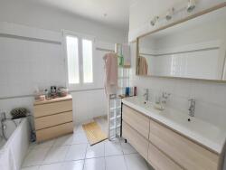 Au 1er étage, grand séjour avec cuisine ouverte équipée donnant sur une terrasse plein sud, 3 chambres, un dressing, une salle de bains et wc séparé.