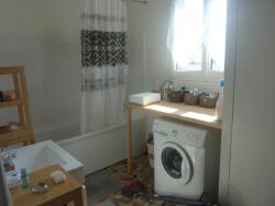 Cuisine aménagée et équipée (plaque, hotte et four) avec sur la pièce principale, 1 chambre, salle de bains, wc séparés