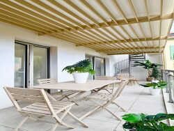 Ce produit comporte aussi de très belles prestations : - Solarium privatif avec jacuzzi - Toit-terrasse de 77,13 m2 - Loggia de 25,70 m2 - Proximité immédiate de la plage - Proximité immédiate de la gare - Résidence avec ascenseur - Volets électriques en alu - Menuiseries en alu - Doubles vitrages - Dressing - Prestations de qualité - Eau chaude et froide collectives - Climatisation réversible - Exposition : Sud - Étage : 2ème (dernier-étage) - État : Neuf - Disponibilité : Libre - Vue : Panoramique mer