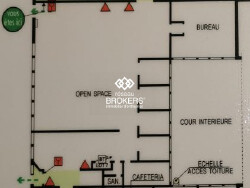 Une transformation de l'espace Open space + bureau (situé en haut à droite du plan d'évacuation) est prévue. Possibilité de créer une ouverture pour une porte sectionnelle + porte vers la cour arborée.