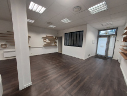 Local commercial comprenant une grande boutique d'environ 64 m2, pièces de stockage, 2 WC séparés, un garage et un espace cuisine.