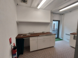 Local commercial comprenant une grande boutique d'environ 64 m2, pièces de stockage, 2 WC séparés, un garage et un espace cuisine.