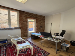 A louer, à 2 pas de la Gare, du métro et de la place Wilson, sur les allées Jean Jaurès à Toulouse, très beau local commercial d'environ 95 m2, plein de charme (parquet au sol, briques..) climatisé en rdc avec vitrines, situé en plein centre de Toulouse . Il se compose d'un grand hall d'accueil de 27 m2, ainsi que de trois bureaux de 14, 12 et 9 m2, d'une pièce de 7m2 pouvant servir d'archives ou autre et d'un WC. Au sous-sol une pièce ouverte (salle de réception/réunion/archives) de 25 m2 avec coin cuisine, et petite pièce d'archivage fermée. Possibilité de profiter d'une terrasse au calme à l'arrière du local. Bail commercial 3/6/9. Loyer 2419EUR . Foncier 2700EUR.