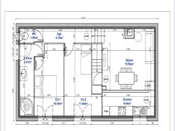 L'appartement, situé à l'étage, s'ouvre sur un séjour avec cuisine ouverte. L'espace nuit comprend deux chambres, une salle d'eau ainsi qu'un WC indépendant.