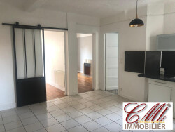 A l'étage, un appartement de type 2 de 51m² actuellement loué 390.00/mois, composé d'une entrée, une pièce de vie, une cuisine, une salle d'eau, un WC et une chambre.