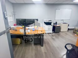 Les bureaux sont en très bon état, lumineux et fonctionnels, avec climatisation réversible, faux plafond et cloisons vitrées. L'ensemble comprend aussi des locaux sociaux : espace d'accueil, sanitaires hommes et femmes, kitchenette et salle de pause.