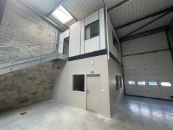 La partie bureaux, d'une superficie totale de 55 m², est répartie sur deux niveaux. Au rez-de-chaussée, vous trouverez un espace de 27 m² climatisé avec sanitaires privatifs. L'étage offre deux pièces supplémentaires pouvant faire office de bureaux ou de salles de réunion, selon vos besoins.