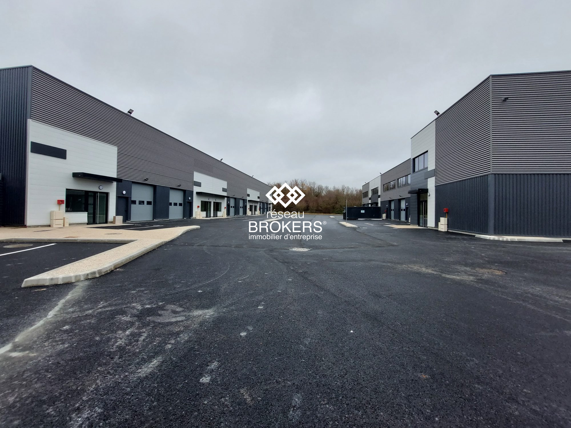 Chaque lot dispose d'un accès de plain-pied par porte sectionnelle motorisée équipée de deux hublots rectangulaires (3,5 x 3,5 m), d'une entrée bureaux indépendante, d'un bloc sanitaire privatif et de places de parking extérieures.