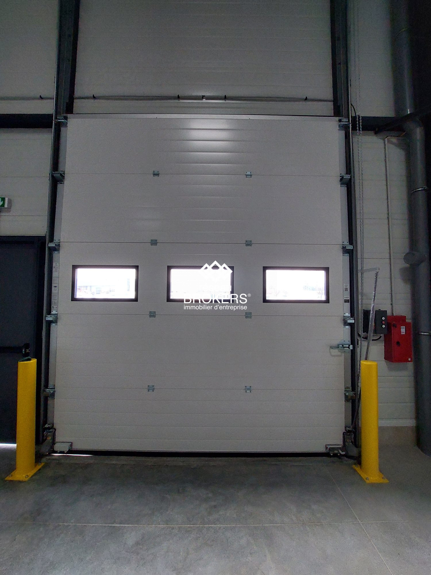 Porte sectionnelle motorisée (3,5 x 3,5 m, avec 2 hublots)