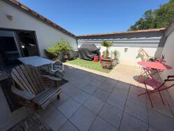 Le local bénéficie également d'une terrasse extérieure en dalles de pierre, idéale pour une pause ou un espace détente.